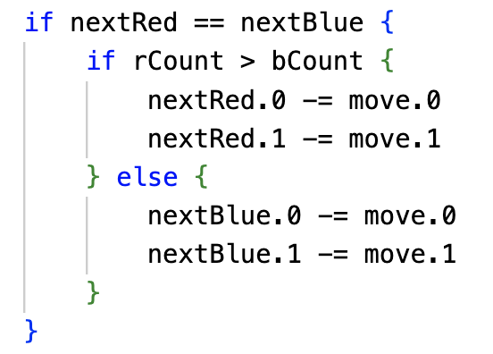 if nextRed == nextBlue {