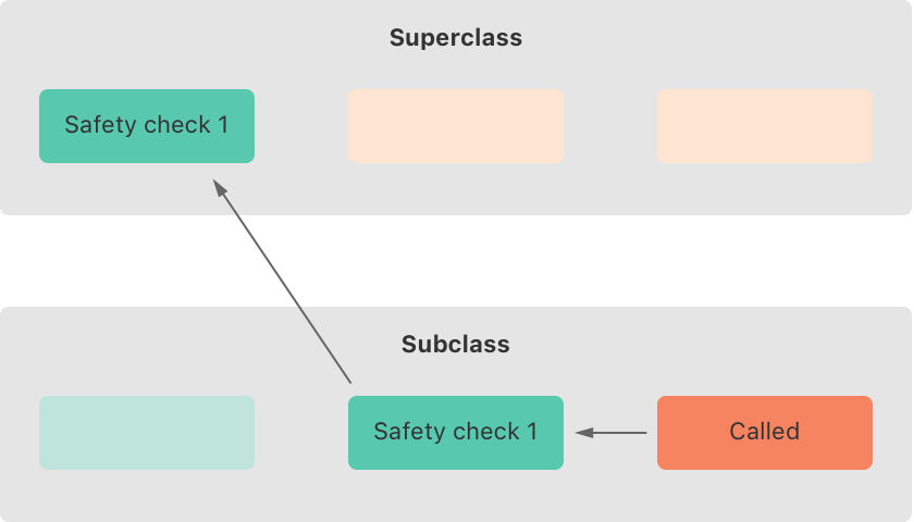 호출된 데지그네이티드 이니셜라이저는 세이프티 체크 1에 따라 서브클래스의 모든 프로퍼티들이 값을 가지는지 확인한다. 그리고 체인을 따라 초기화를 계속하기 위해 슈퍼클래스의 데지그네이티드 이니셜라이저를 호출한다.